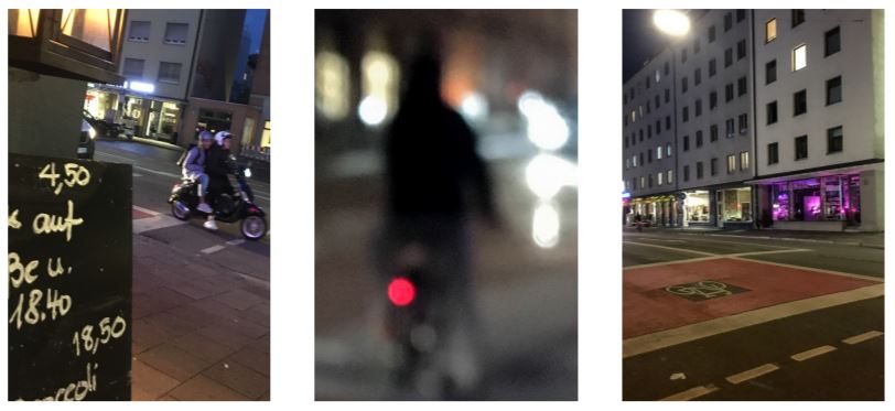 Im zweiten Teil des Fotoprojekts geht es um einen Mikrokosmos von Straße am Rande des Glockenbachviertels in München. Die nach Josef Leonhard Schmid (1822-1912), dem Gründer des Marionettentheaters in der Blumenstraße benannte Straße, misst ganze 75 Schritte, dafür aber 4-spurig. Das Ungleiche zur Donnersberger Brücke wird schnell offensichtlich – das Wesen der Straße ist dennoch schwierig zu fassen. Zwei Hausnummern, ein Taxistand… Wer hier in unmittelbarer Umgebung von Gärtnerplatz, Glockenbach-Viertel und Sendlinger-Tor-Platz ein paar Minuten inne hält und dem Fluss an mobilem Leben seine Aufmerksamkeit schenkt, dem wird ein wenig Transitlust und multikulturelle Flair in diesem „Sträßchen“ begegnen. Die Musik der Boliden bei nur recht kurzer Beschleunigungsstrecke, die Tram, die mit rasselndem Zischen vorbeigleitet, jeweils mit typischem Klangmuster je nach Baujahr. Und immer wieder die Momente des Wartens an der Ampel.